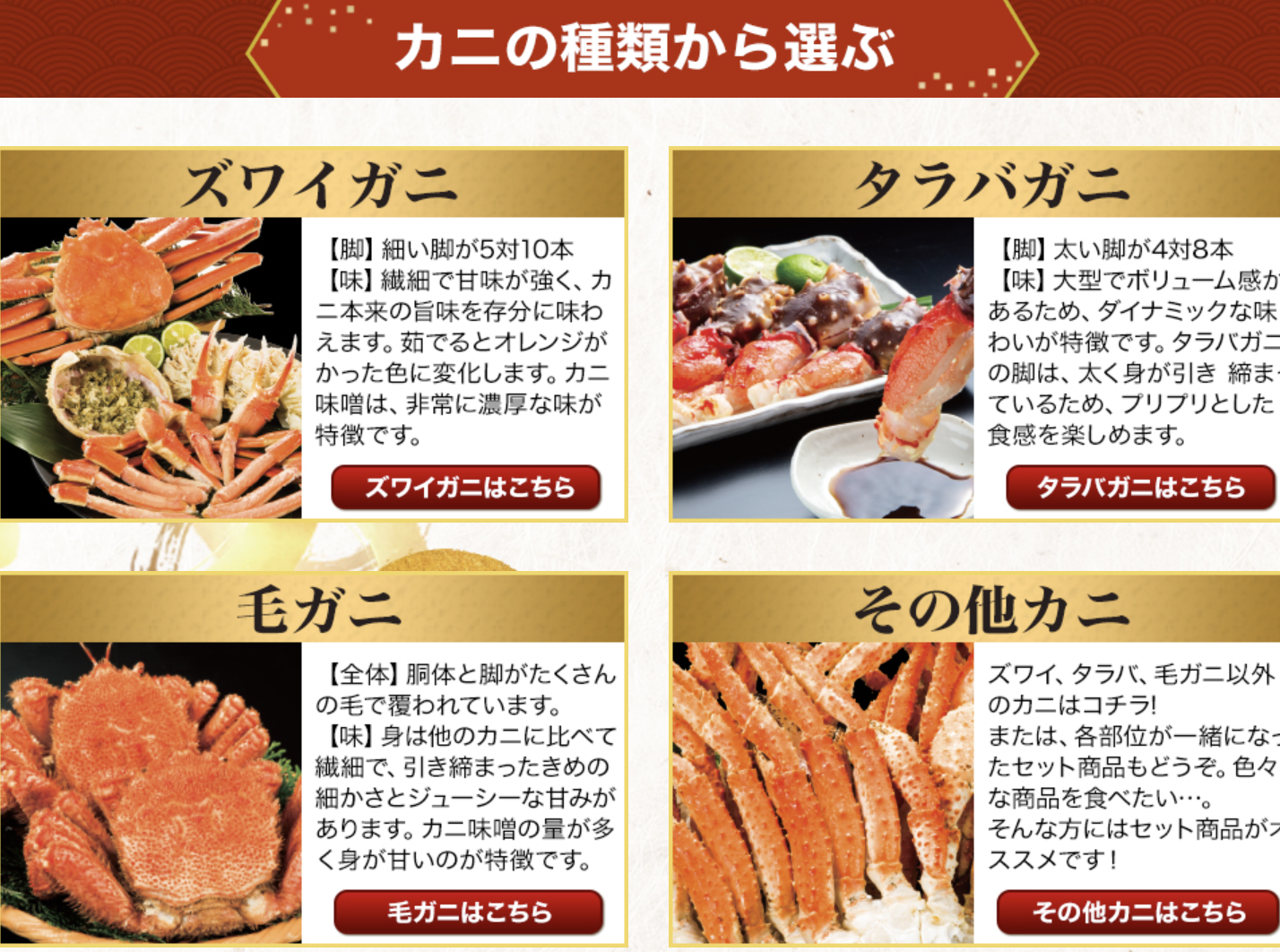 種類別:快適生活オンラインで手に入る人気カニラインナップ